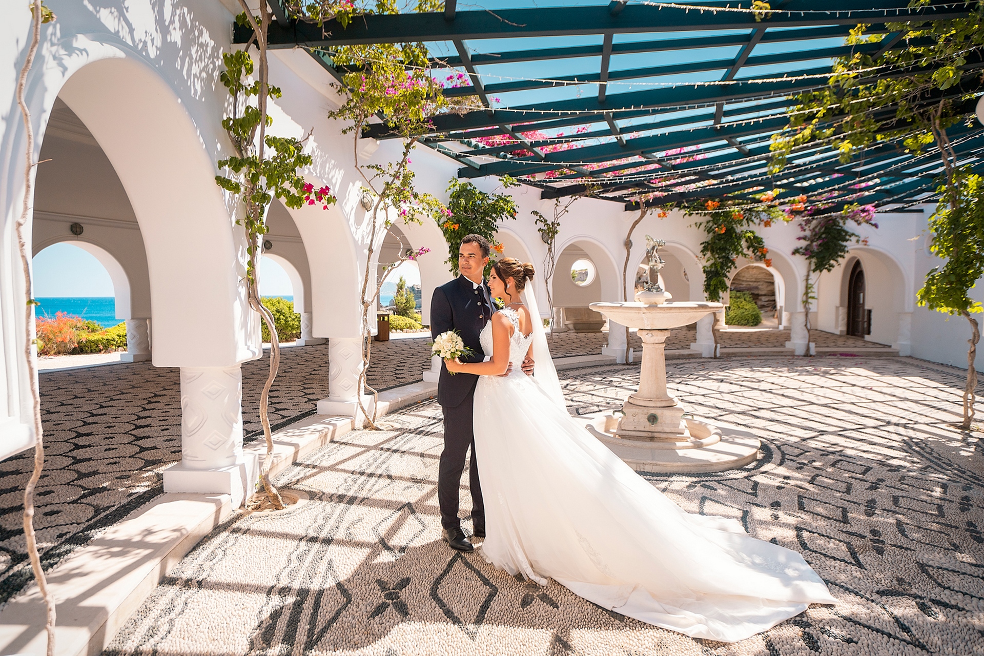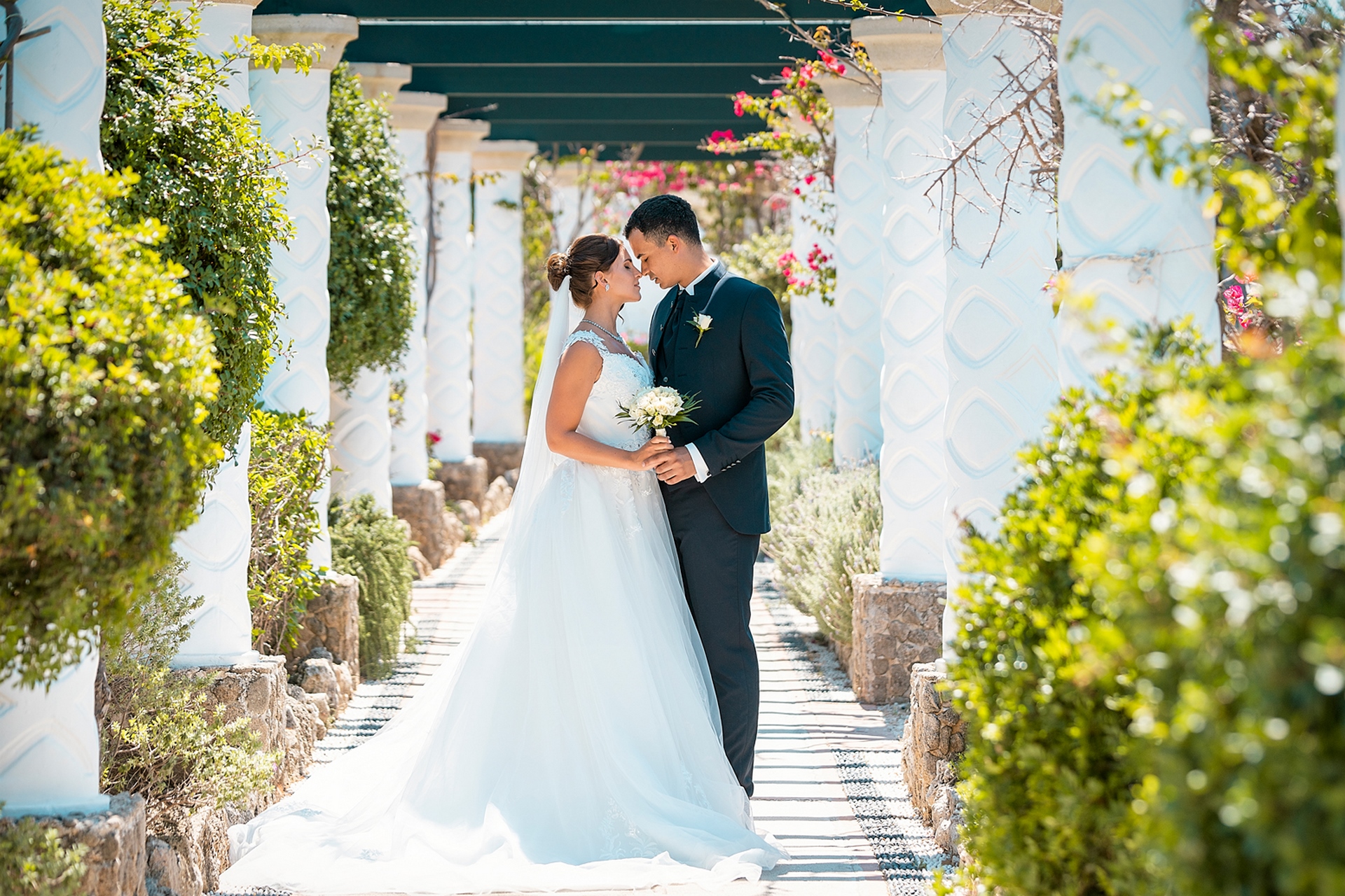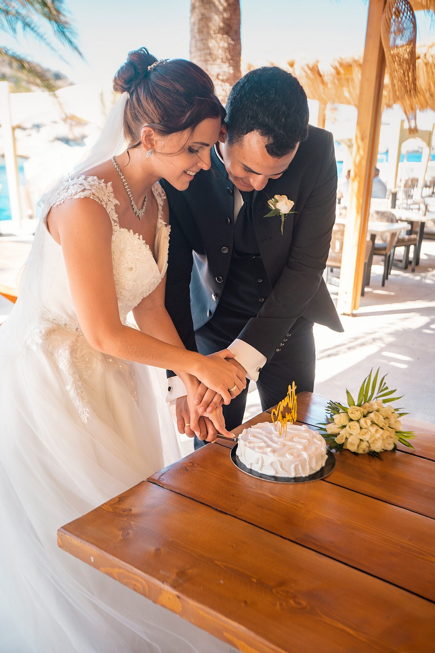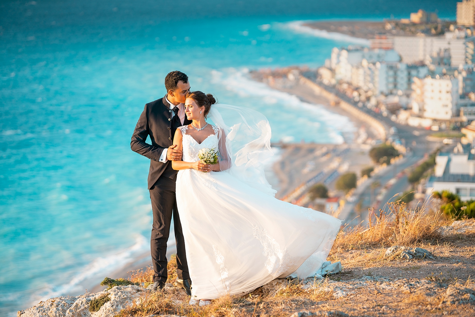 Is becoming popular among couples to arrange a wedding for “two”, without guests and a lot of noise, as our couple in love did. after the official part, we went to continue our photo and video shooting in the beautiful places of Rhodes island. A great addition to the shooting was a white convertible Mercedes, that our newlyweds ordered for their special day.