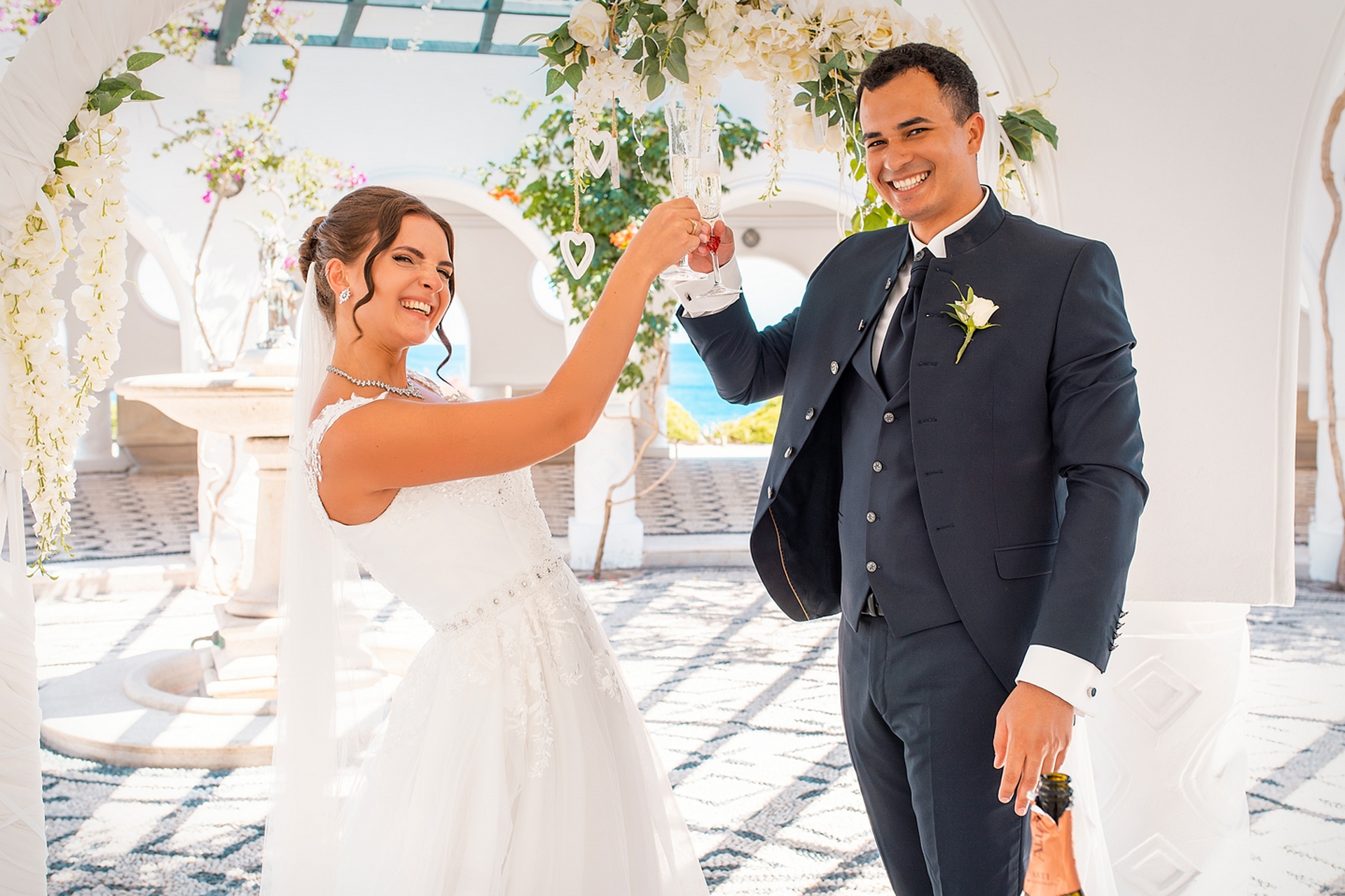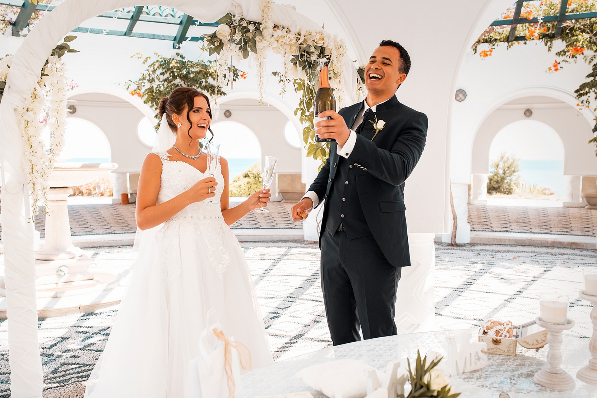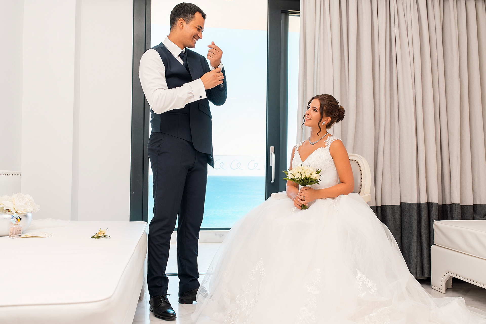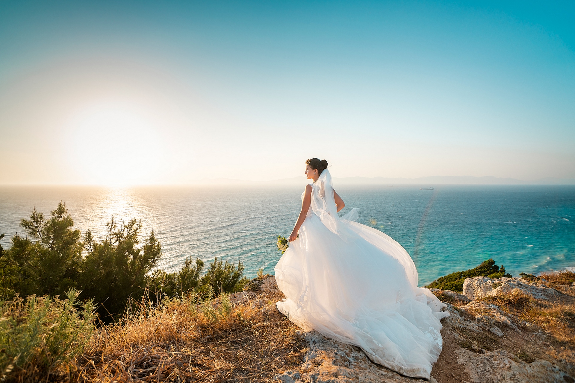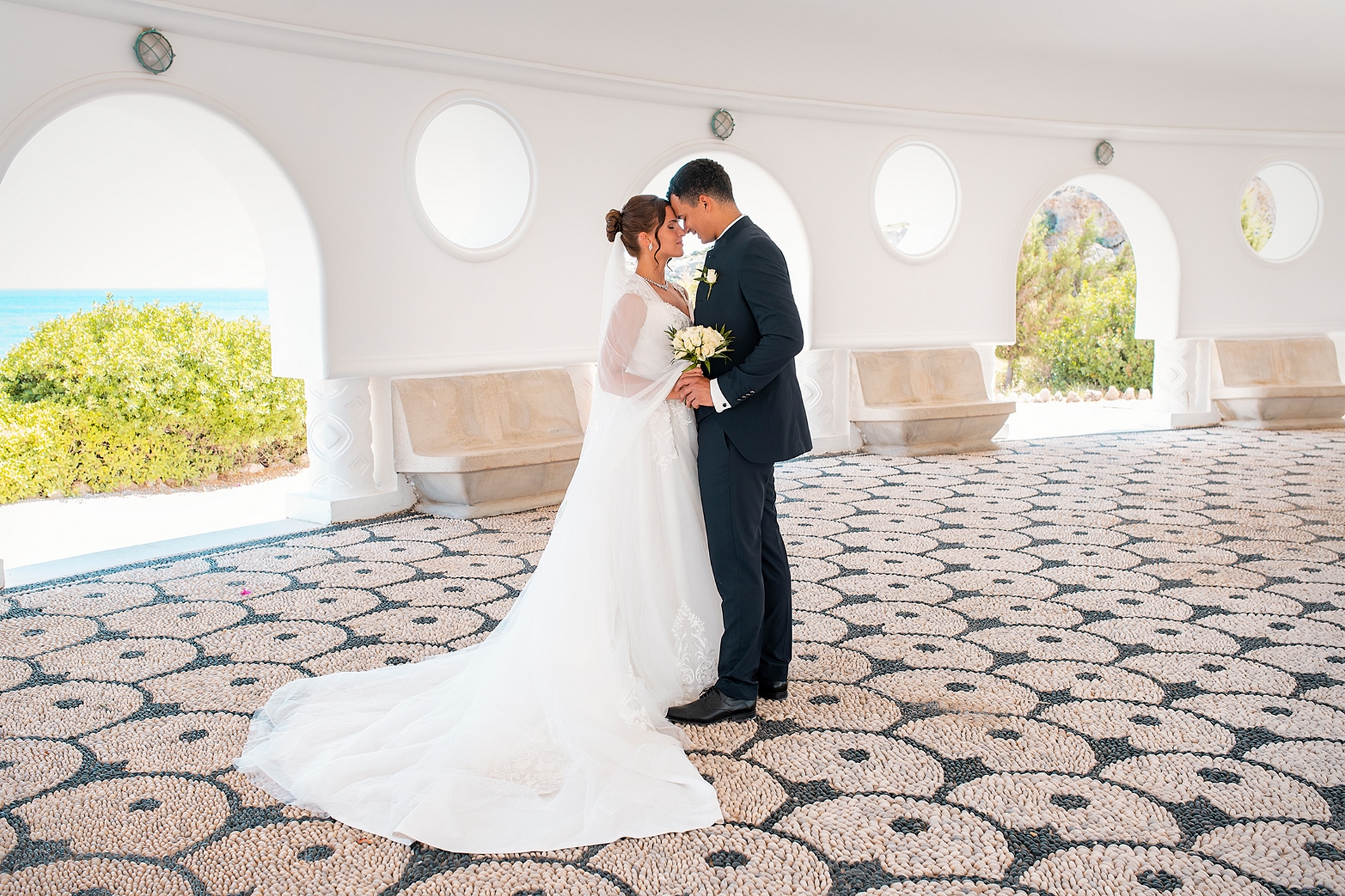 Is becoming popular among couples to arrange a wedding for “two”, without guests and a lot of noise, as our couple in love did. after the official part, we went to continue our photo and video shooting in the beautiful places of Rhodes island. A great addition to the shooting was a white convertible Mercedes, that our newlyweds ordered for their special day.