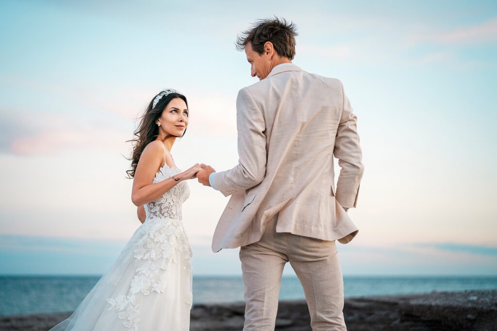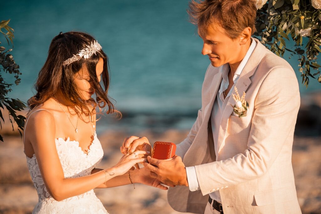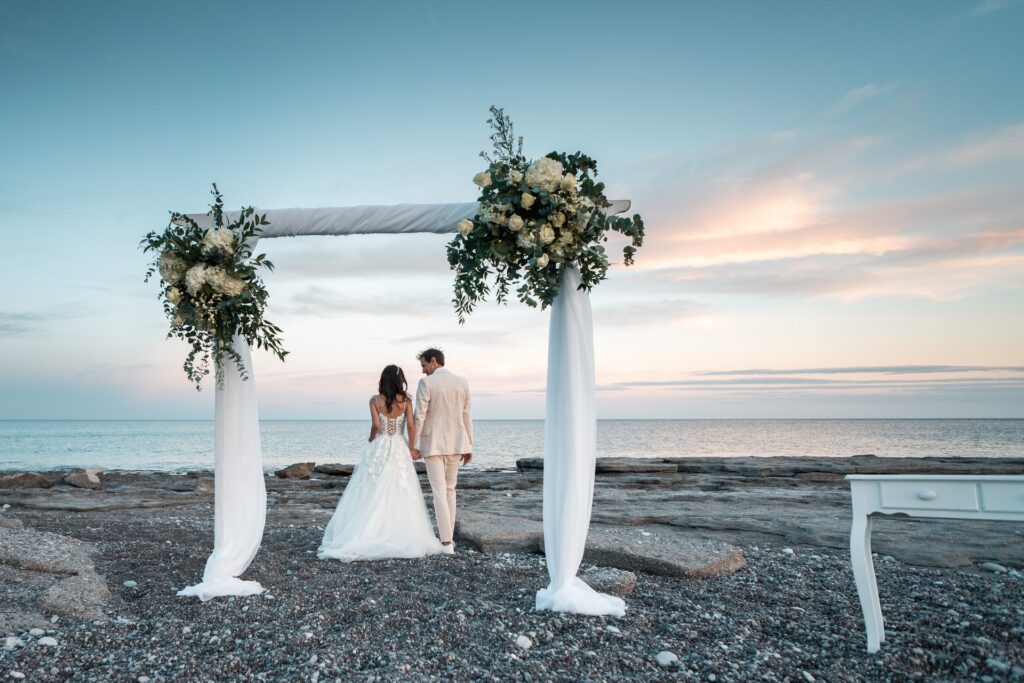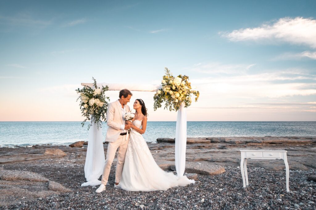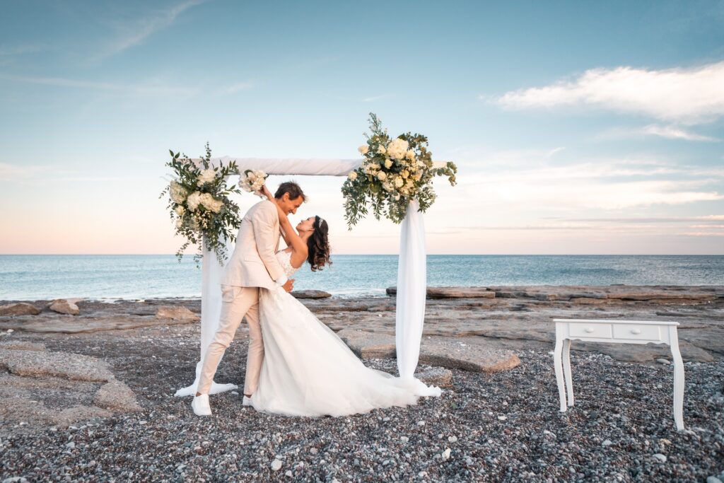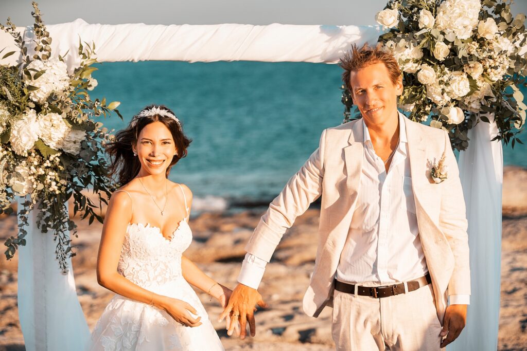 Beautiful wedding of lovely couple on the beach.